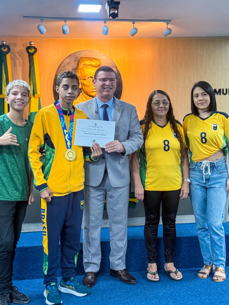 Hoje (13) pela manhã, Ryan Pablo recebeu uma homenagem na Câmara Municipal de Campina Grande. A propositura foi do vereador Dinho Papa-Léguas em virtude do feito inédito do atleta campinense para o esporte da cidade. Ryan esteve acompanhado de professores, parentes e amigos na Casa de Félix Araújo.