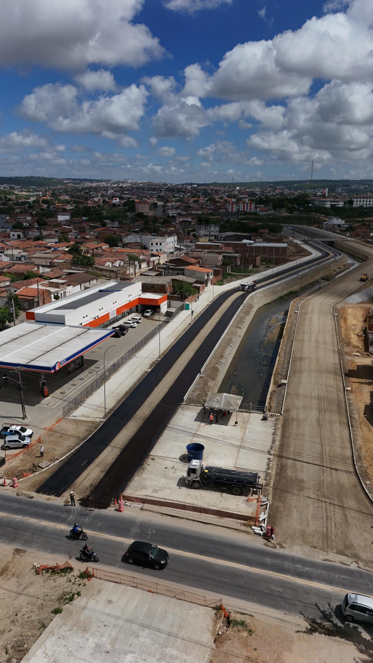 A Prefeitura de Campina Grande, por meio da Secretaria de Obras (Secob), realizou no último sábado (21), uma importante etapa de mobilidade urbana nas obras da terceira fase de canalização e urbanização do Canal de Bodocongó: a execução da imprimação asfáltica, primeira etapa da pavimentação.