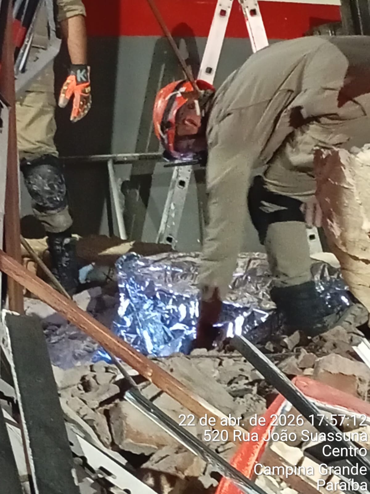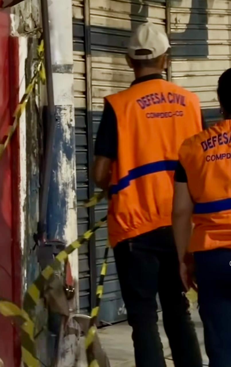 A Prefeitura Municipal de Campina Grande, por meio da Defesa Civil e da Secretaria de Obras (Secob), acompanhou desde os primeiros minutos a ocorrência registrada nesta quarta-feira, 22 de abril de 2026, envolvendo o desabamento parcial de uma estrutura predial em um imóvel localizado na Rua João Suassuna, no Centro da cidade.