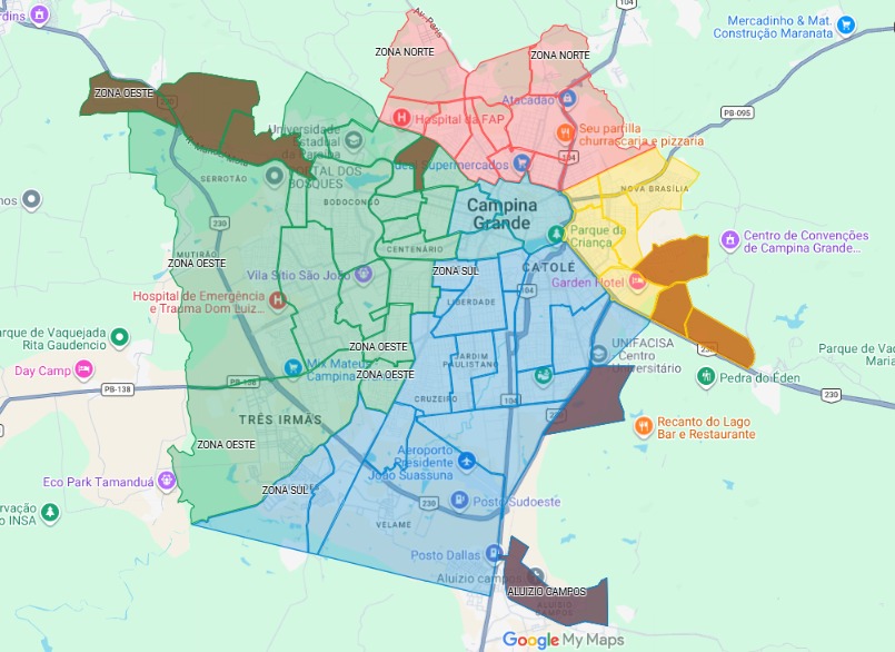 O município de Campina Grande possui, atualmente, três distritos e 61 bairros. Confira a lista: