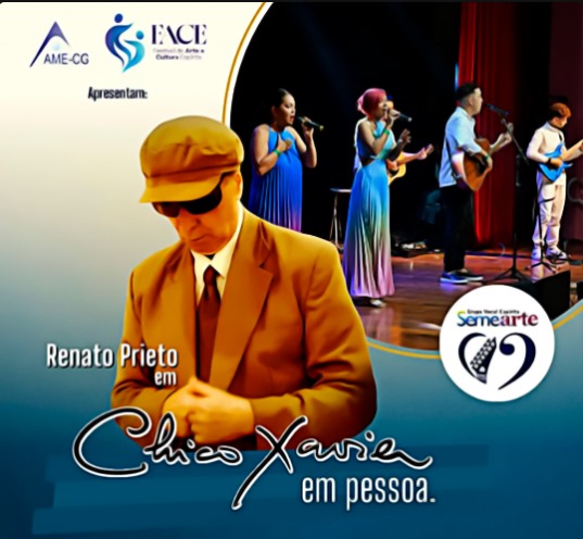 Nesta sexta-feira, 17, o Teatro recebe o Festival de Arte e Cultura Espírita, com a peça “Chico Xavier em Pessoa” às 19h e a participação musical do grupo SEMEARTE.